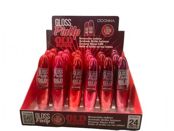Le Gloss Pin Up Old School offre une texture crémeuse et un brillant intense avec une tenue exceptionnelle de 24 heures.